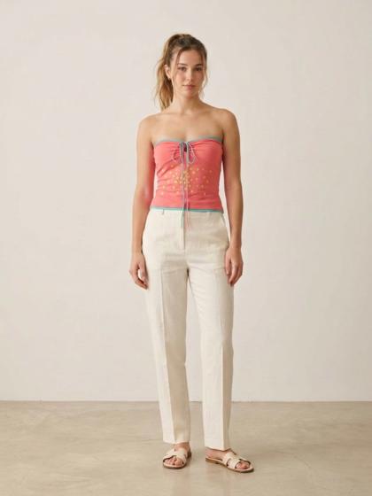 Jersey tank top with dropped shoulders and tulle details to make the garment very youthful and elegant at the same time.