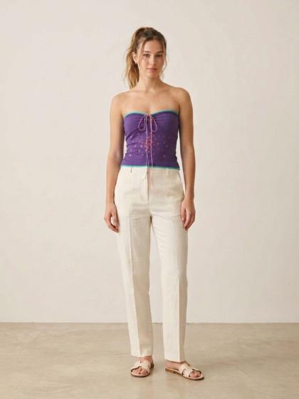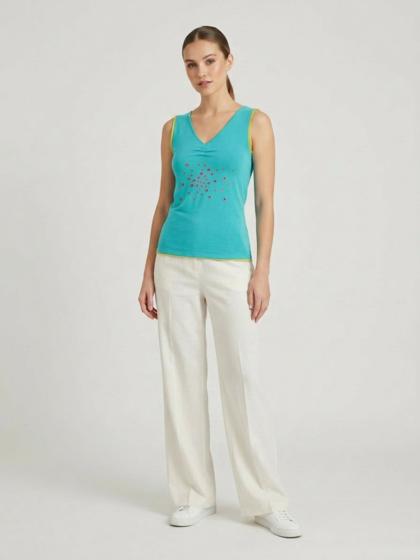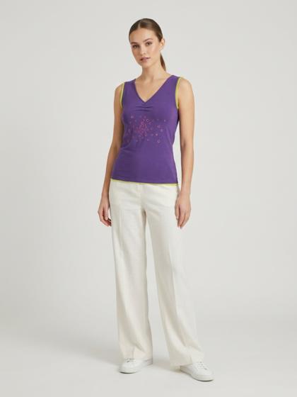 Jersey tank top with tulle perforations to make the garment very youthful and elegant at the same time.