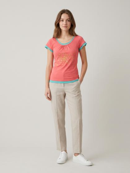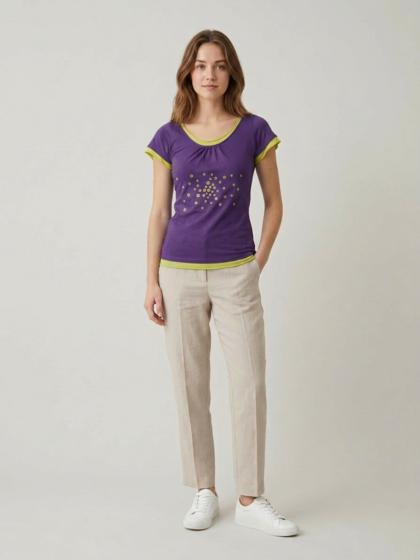 Crew neck, half sleeve in Jersey with tulle perforations to make the garment very youthful and elegant at the same time.